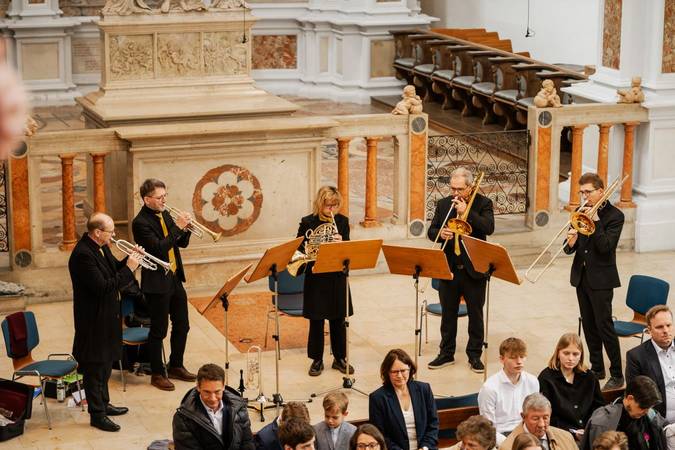 St. Anna ist bekannt für seine Engel. Besonders auffällig ist der große goldene Engel auf der Kanzelhaube. Er erinnert mit seiner Trompete stolz und jubelnd an den Westfälischen Frieden, der den 30jährigen Krieg 1648 beendete. Ein weiterer Trompetenengel steht seit 1965 als Wetterfahne auf dem Giebel der Fuggerkapelle. Insofern wurde es höchste Zeit für die Gründung eines eigenen Blechbläserensembles an St. Anna: